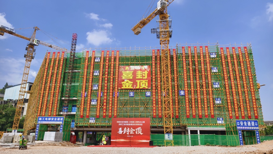 封頂大吉!華新歷史風(fēng)貌區(qū)·文創(chuàng)區(qū)工程科 辦公樓及職工培訓(xùn)宿舍樓活化利用項(xiàng)目 主體結(jié)構(gòu)封頂