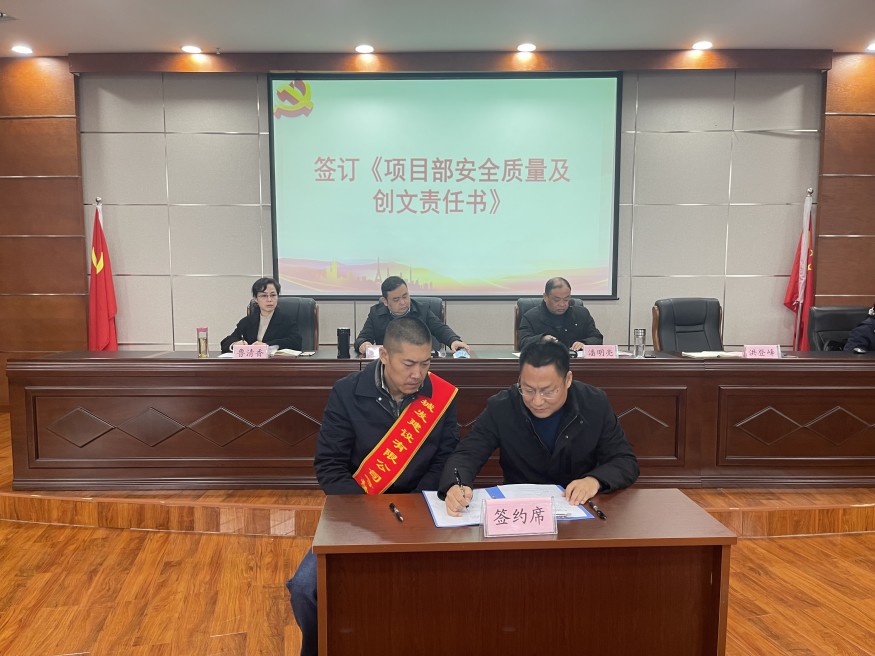會上,公司分管領(lǐng)導和各項目部依次簽訂《項目部安全質(zhì)量及創(chuàng)文責任書》《項目廉潔建設目標責任書》,全體參會人員現(xiàn)場簽訂《工程項目建設廉潔承諾書》。